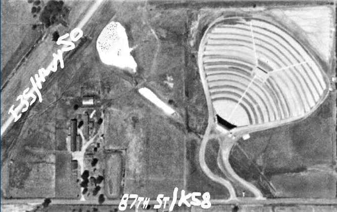 Lenexa’s “New 50 Drive-In” (later the “Fox 50”) made its debut in 1953. Northeast of what is now I-35 and 87th Street (NE corner of 87th Street and Lenexa Drive), the 29-acre site had space for 900 cars. One newspaper column stated that the drive-in “offered a kiddie playground, sizable concession stand, and restrooms patterned on the latest Hollywood type. A special milk dispenser was even installed for ‘bottle babies.’”