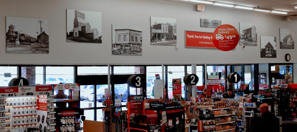 If you are visiting the Westlake Ace Hardware at 87th & Lackman, we encourage you to take a step back and look up as you check out. Our friends at Westlake reached out to LHS for assistance in displaying some Lenexa history in their store. Above the registers you will find seven historical images of Lenexa pulled from the LHS archives. Thank you to Westlake for this great opportunity to share our community’s history.