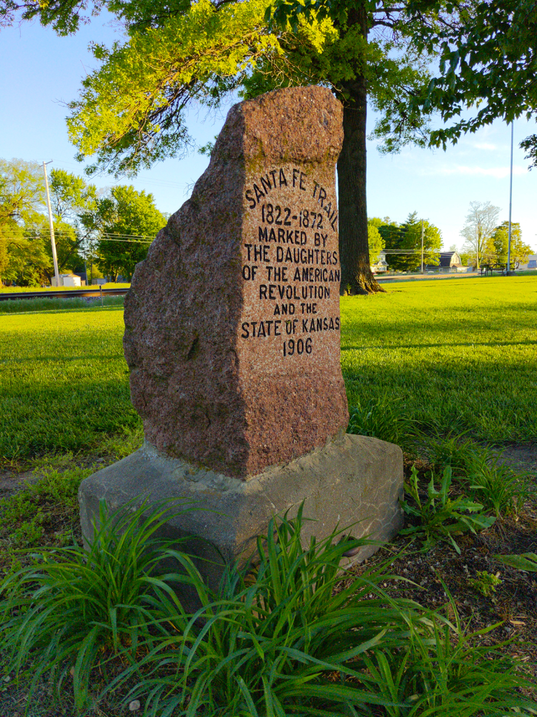 At the beginning of the twentieth century, the Daughters of the American Revolution’s Kansas Chapter began a campaign to create markers commemorating where the Santa Fe Trail passed through the state. One of these markers resides here in Lenexa. Placed in the area in 1906, the marker has resided in several locations over the years. It is currently placed in Bradshaw Park at the Southwest corner of Santa Fe Trail Drive and Noland Road.