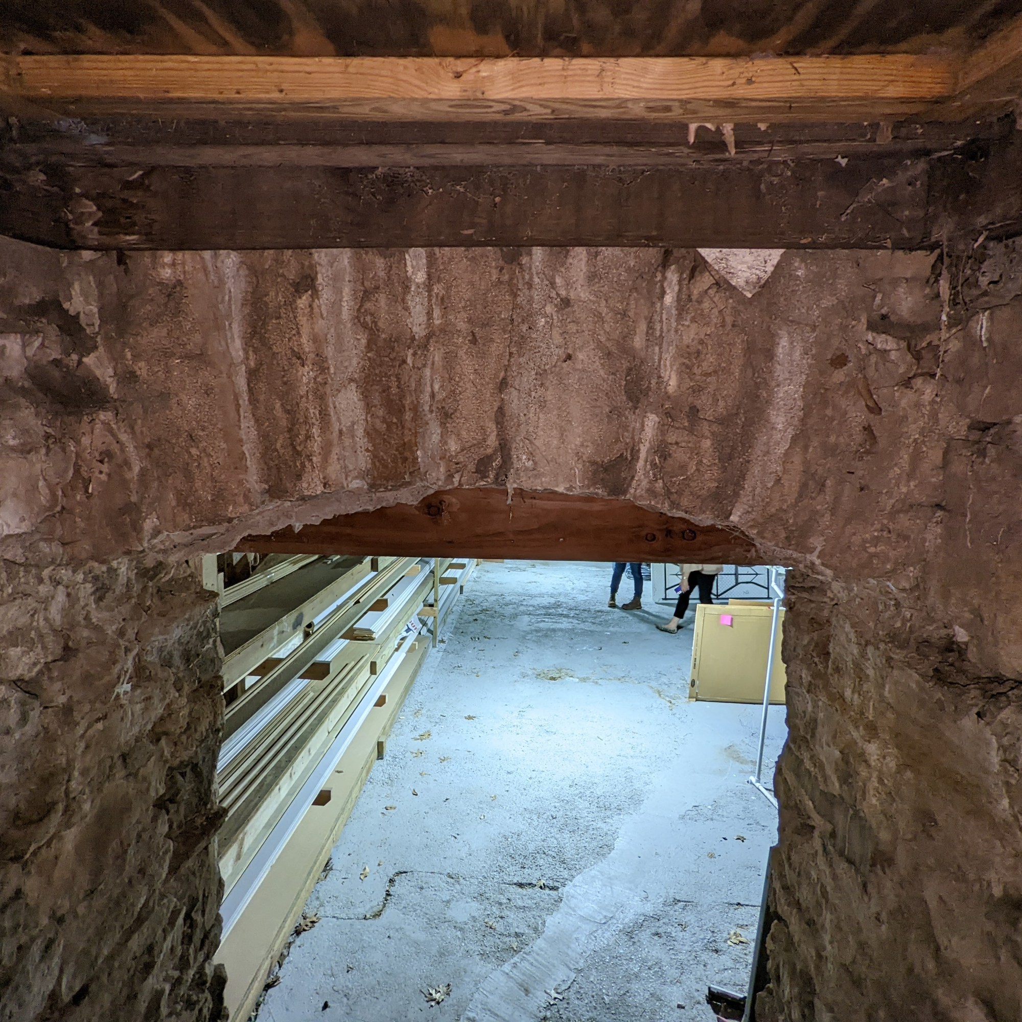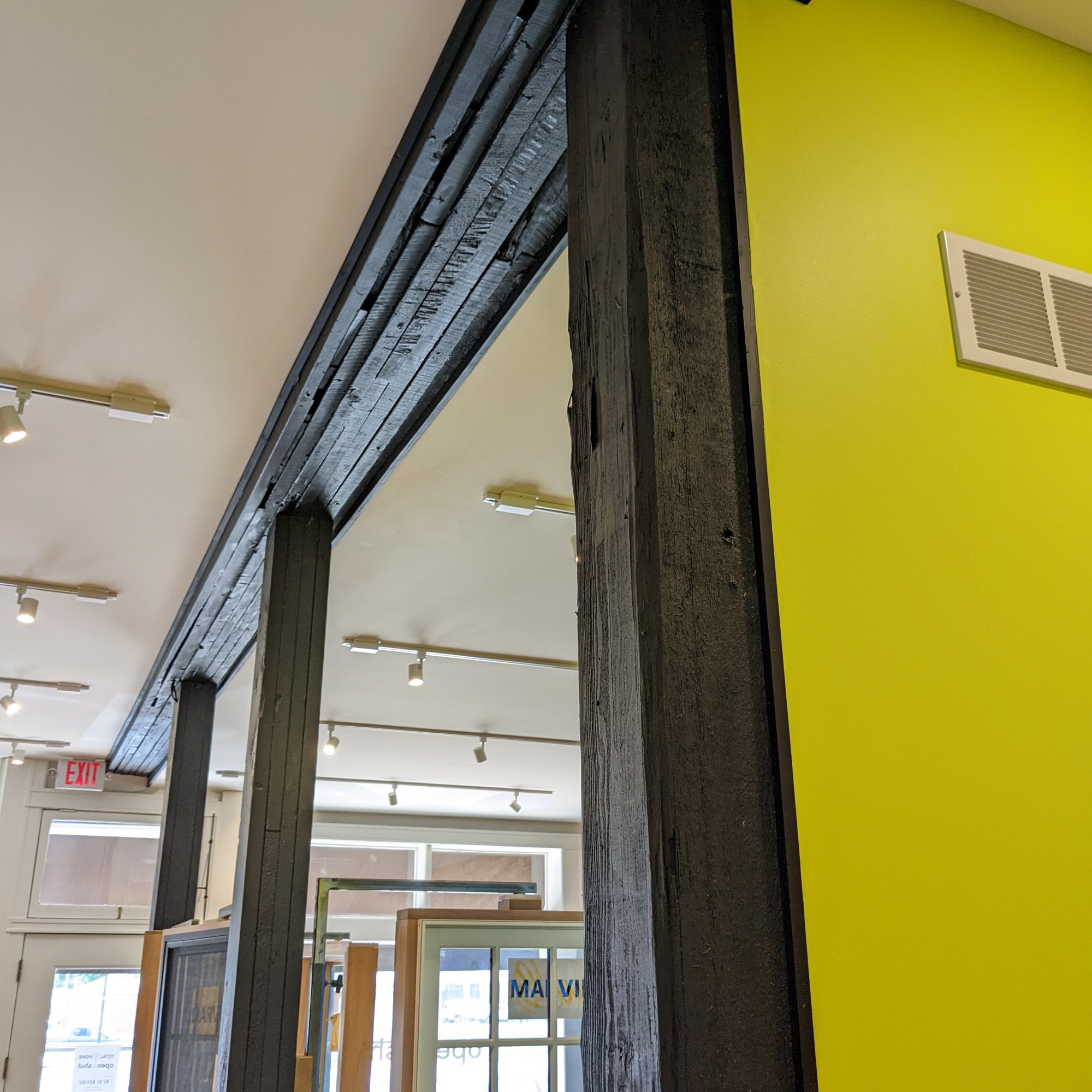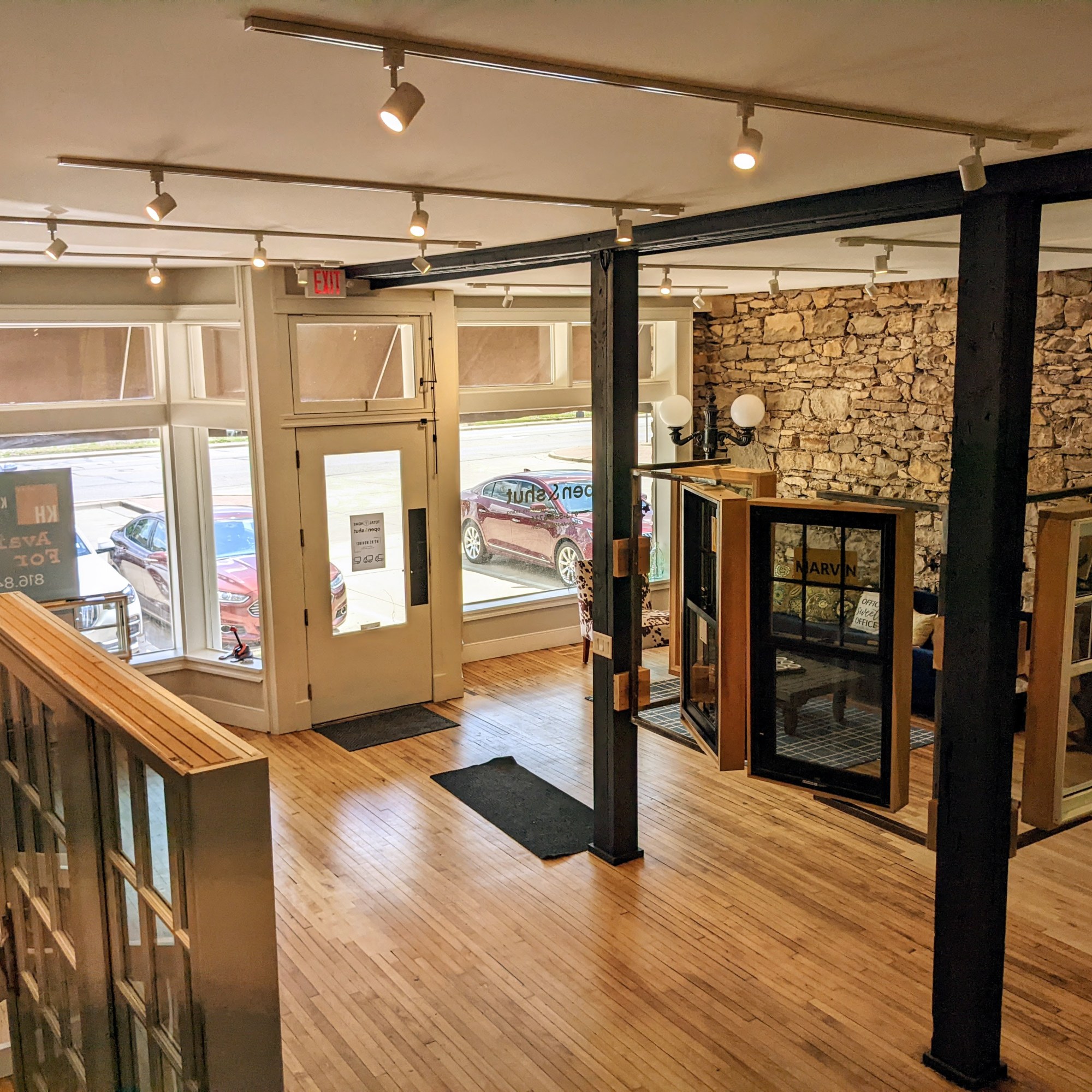 Strand operates two businesses in the building: Total Home, specializing in whole house remodeling, and Open & Shut, dedicated to home window and door replacement. The bottom floor serves as the showroom for Open & Shut with examples of Marvin brand windows and sliding doors. The warehouse and basement now mirror their original uses — the storage of goods and supplies. The second floor, houses offices but with an open floor plan which makes it easy to imagine the space as it was when it hosted events as Krumm Hall.
